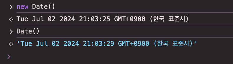 Date 생성자 함수를 new 연산자 없이 호출하면 Date 객체를 반환하지 않고 날짜와 시간 정보를 나타내는 문자열을 반환한다.