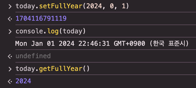 Date 객체에 연도를 나타내는 정수를 설정한다.