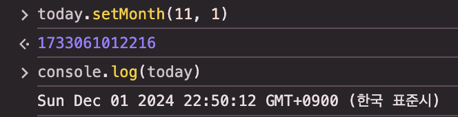 Date 객체에 월을 나타내는 0~11의 정수를 설정한다.