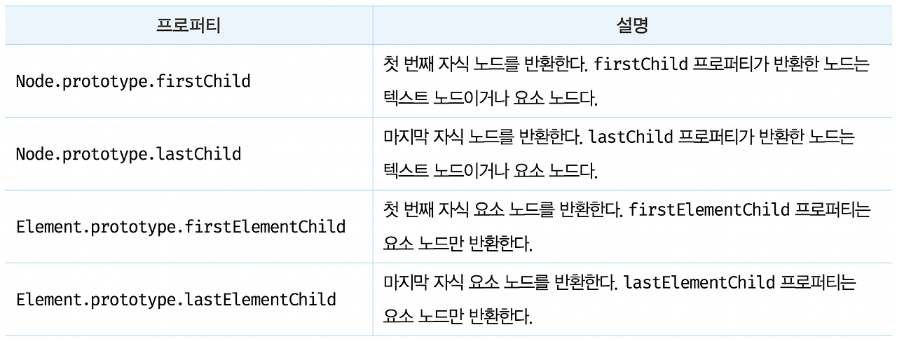 즉, 아래 프로퍼티는 텍스트 노드 또는 요소 노드만 반환된다.