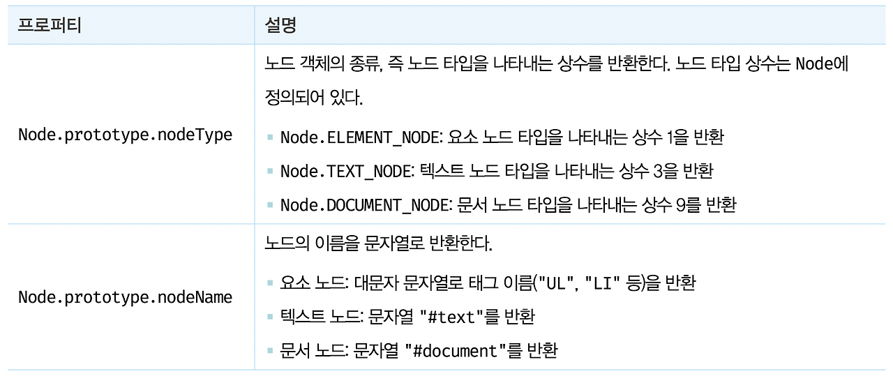 - Node.prototype이 제공: parentNode, previousSibling, firstChild, childNodes 프로퍼티