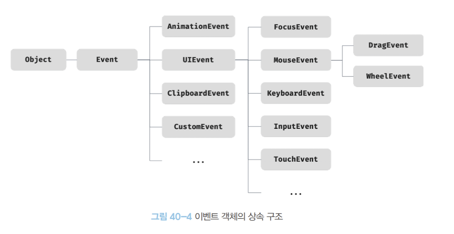 - 이벤트가 발생하면 이벤트 타입에 따라 다양한 타입의 이벤트 객체가 생성된다.