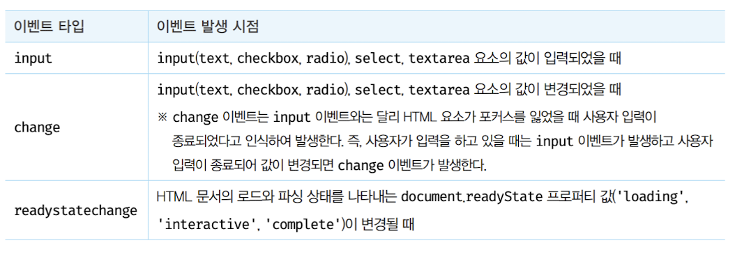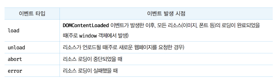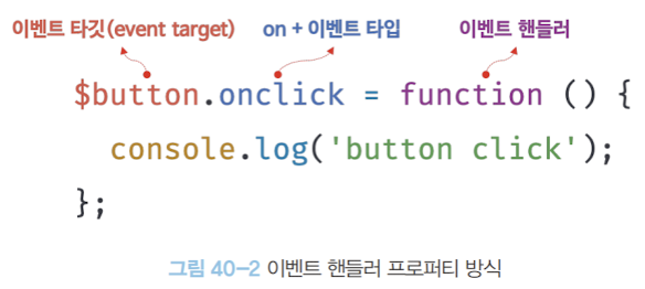 - window 객체와 Document·HTMLElement 타입의 DOM 노드 객체는 이벤트에 대응하는 이벤트 핸들러 프로퍼티를 가지고 있다.
