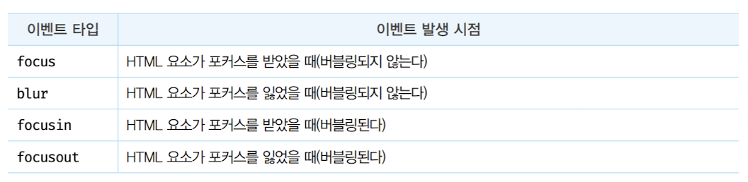- focusin, focusout 이벤트는 addEventListener 메소드 방식을 사용해 등록해야 한다.