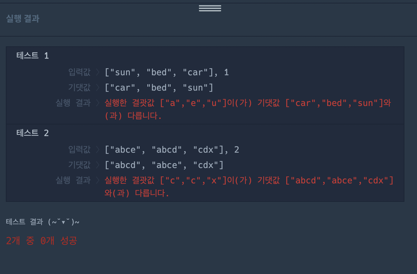 코딩테스트 연습 - 문자열 내 마음대로 정렬하기