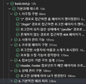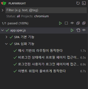 그런데 유닛 테스트 끝났다고 끝이 아니었다. 유닛 테스트 통과하고 당당하게 진행한 e2e 테스트는 와르르 실패.. 물론 내가 기능 구현을 그지같이 해놔서 그런거였지만..