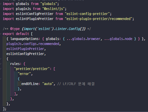 좀 더 본질적인 문제 해결 방법은 eslint 파일을 수정하는 것이었다!