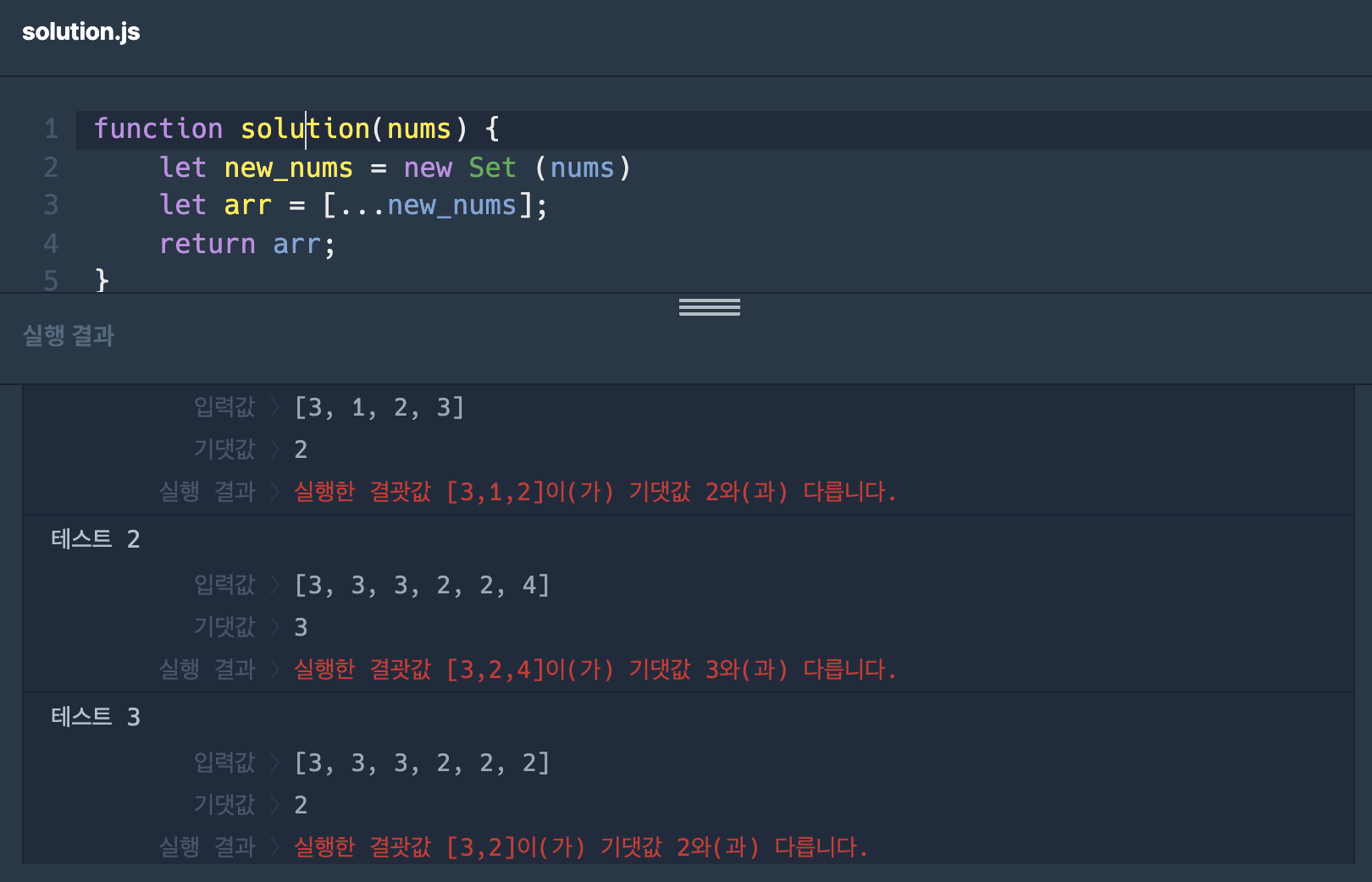 먼저 new Set(nums)로 중복값이 있는 배열을 Set객체로 만들어서 중복을 제거하고,