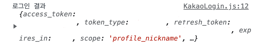 Kakao.Auth.login의 reponse를 콘솔로 찍으면