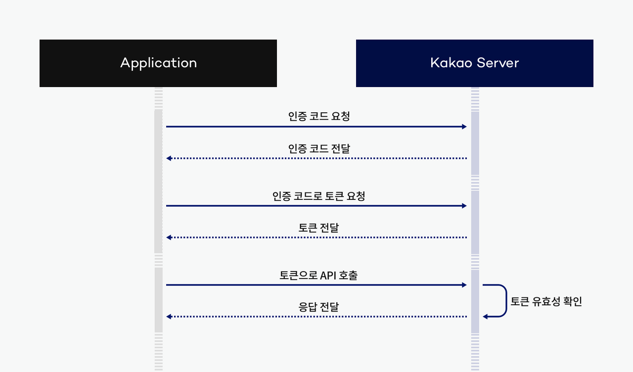 카카오 로그인은 서비스와 카카오 서버가 서로 정보를 주고받는 방식으로 진행된다.