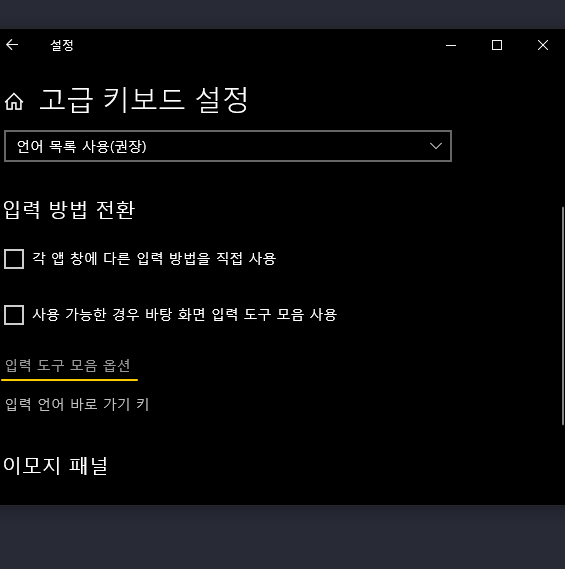2. 입력 도구 모음 옵션