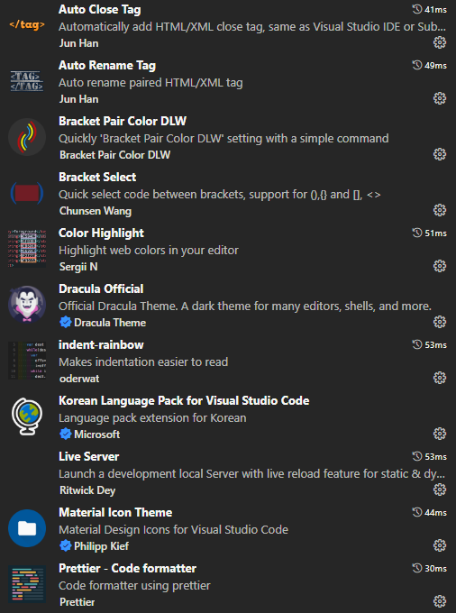 얼마 전에 갑자기 vsCode가 초기화???되면서 설치되었던 확장프로그램이.. 초기화됐다 ☠